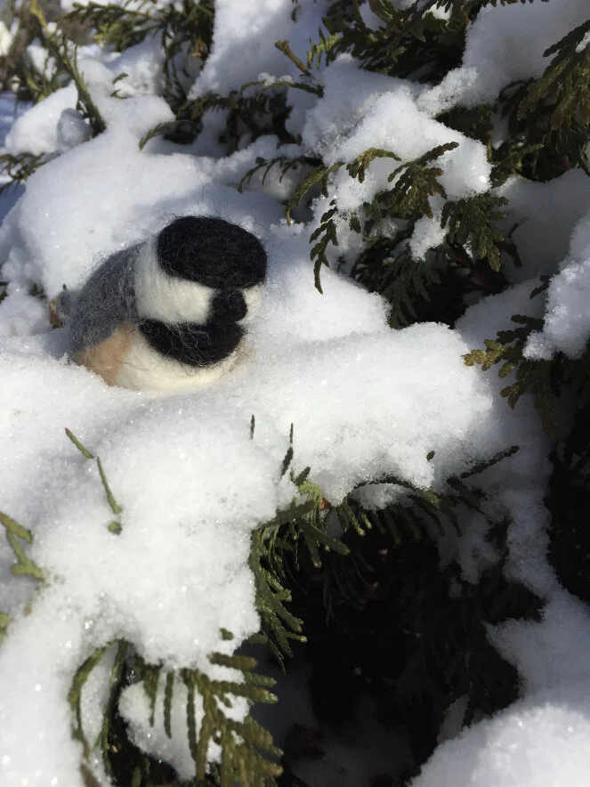 I seem to come back to the same subjects in multiple ways. I've done a paper cutting, a sewn stuffed animal, and a felted penguin, for example. A while back, I did a layered paper cutting of a black-capped chickadee. I might pull it out and compare.