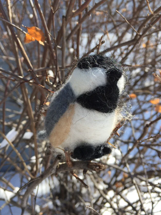 Needle felting both delights and frustrates me (and also makes me bleed). It's amazing to watch a shape just appear from repeatedly stabbing some fluff, and challenging to do small details. When I do a paper cutting, it's hard to tell when to call it done. I'm always tempted to change one last detail. With needle felting, it's easier to decide when to call the item finished; when I start to feel guilty about repeatedly stabbing what looks like an animal, I know it's time to stop.