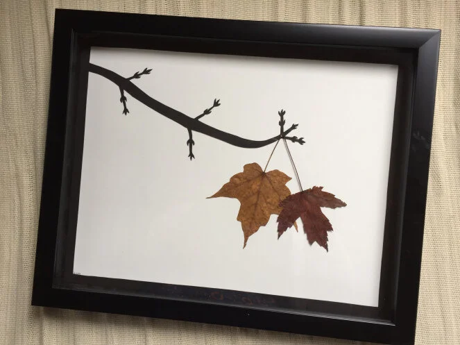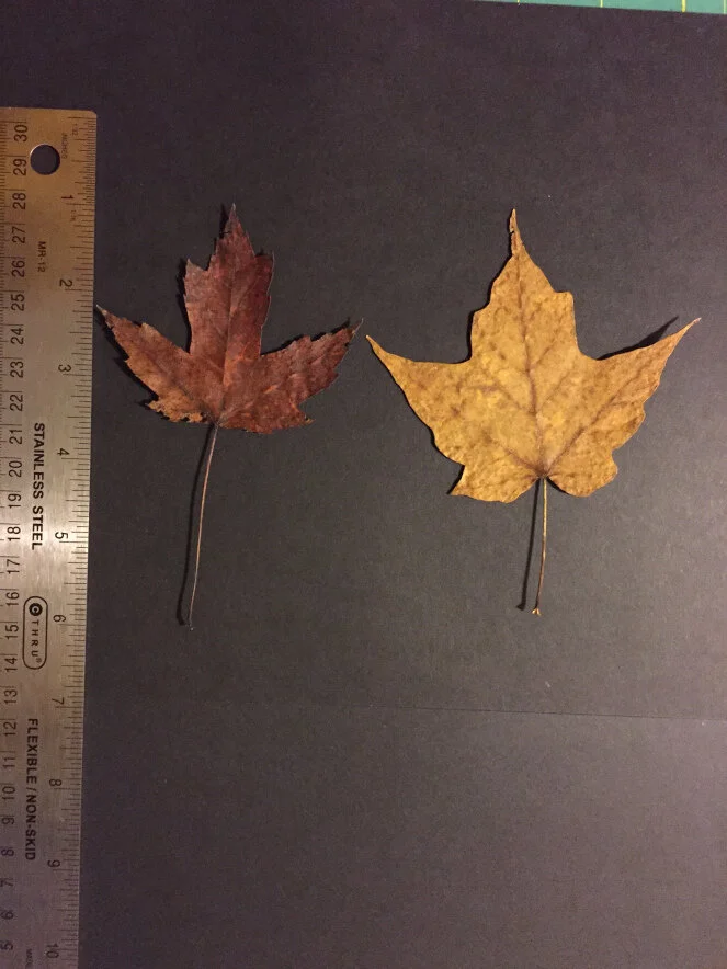 When my brother said he was going to propose to his then-girlfriend on a weekend away last fall, I asked if they'd do something a little weird: would they bring me back some pretty fallen leaves? I told them I'd make something out of the leaves.They brought... a lot! I pressed them all, and then chose two for the idea I had, and tried to figure out what they were. I was totally unsuccessful at getting a specific identification beyond maple, despite asking my tree-brilliant friends.